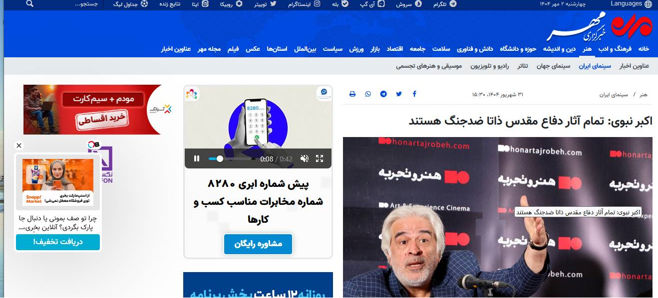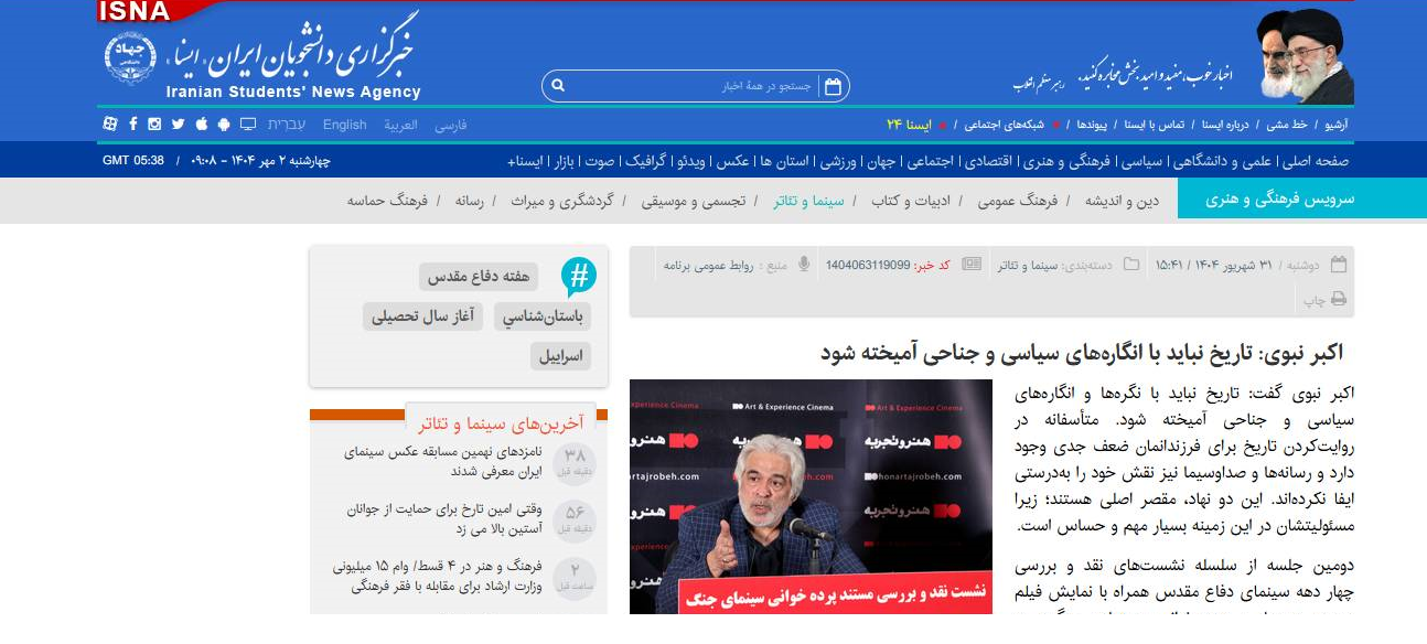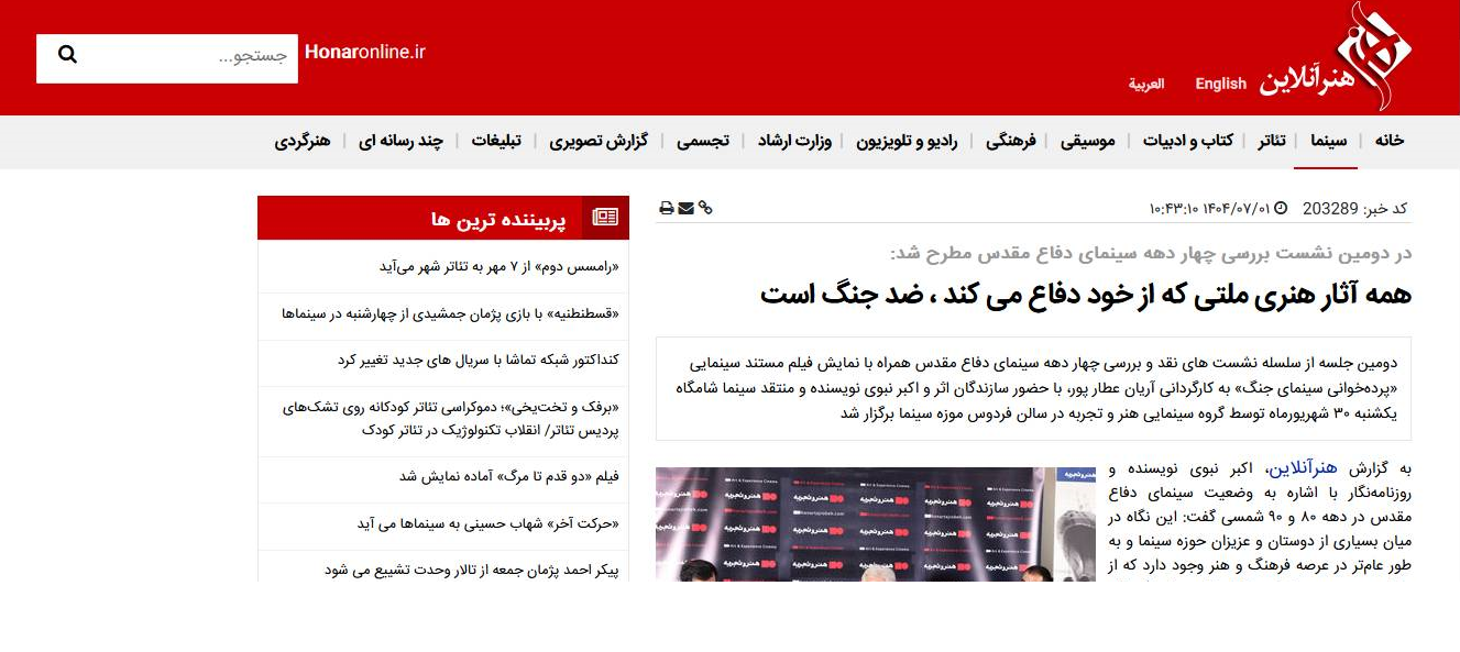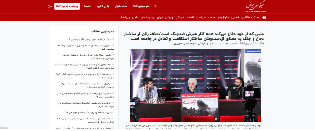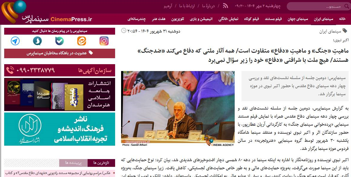 به گزارش پایگاه خبری موزه سینمای ایران، دراین نشست ها فیلم مستند سینمایی «پردهخوانی سینمای جنگ» به کارگردانی آریان عطارپور، با حضور سازندگان اثر و اکبر نبوی نویسنده و منتقد سینما به نمایش درآمد.