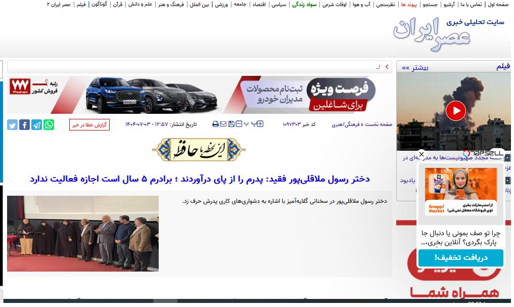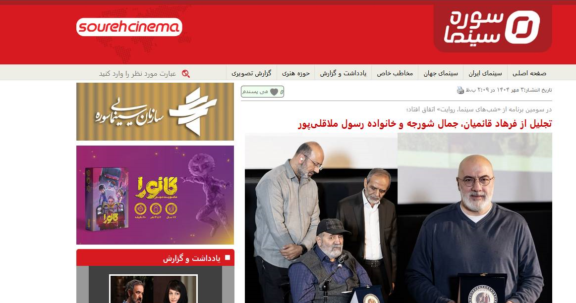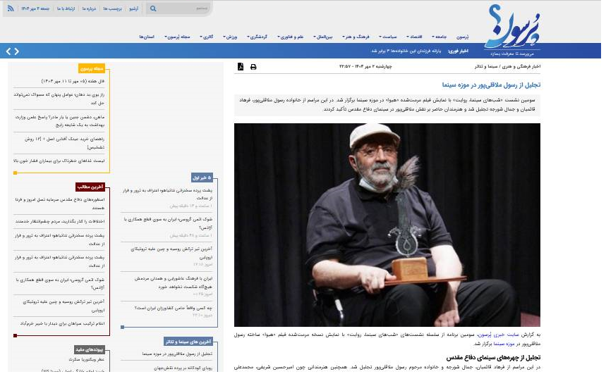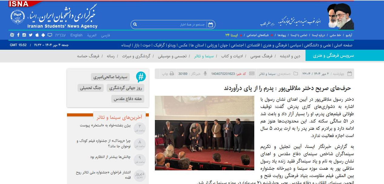 همچنین به فاطمه محمدی مدیرعامل موزه سینمای ایران هم نشان رسول اعطاء شد. محمدی گفت: اکثر کسانی که در حوزه سینمای دفاع مقدس فعالیت داشتهاند، ناگفتههایی درباره آقای ملاقلیپور دارند و هرقدر گردهمایی برگزار شود تا از ایشان سخن گفته شود، باز هم حرفهای بسیاری باقی میماند و باید قدردان همه این عزیزان بود و قدرشان را تا زمانی که در قید حیات هستند، دانست.