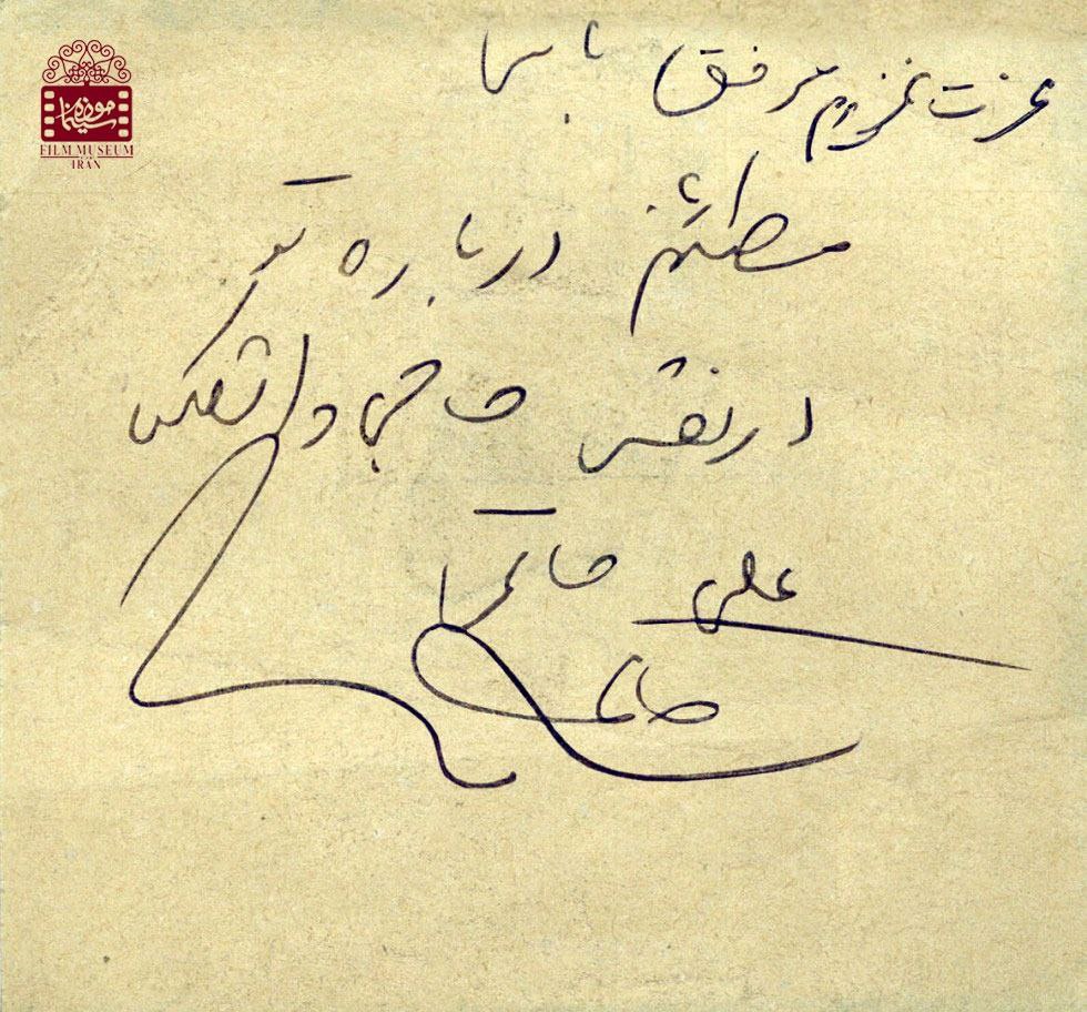 دفترچهای که در آن دیالوگهای فیلم «حاجی واشنگتن» را ثبت کرده و همچنین دست خطی که برای مرحوم عزتالله انتظامی نوشته بود، اکنون در موزه سینما به یادگار نگه داشته میشود..