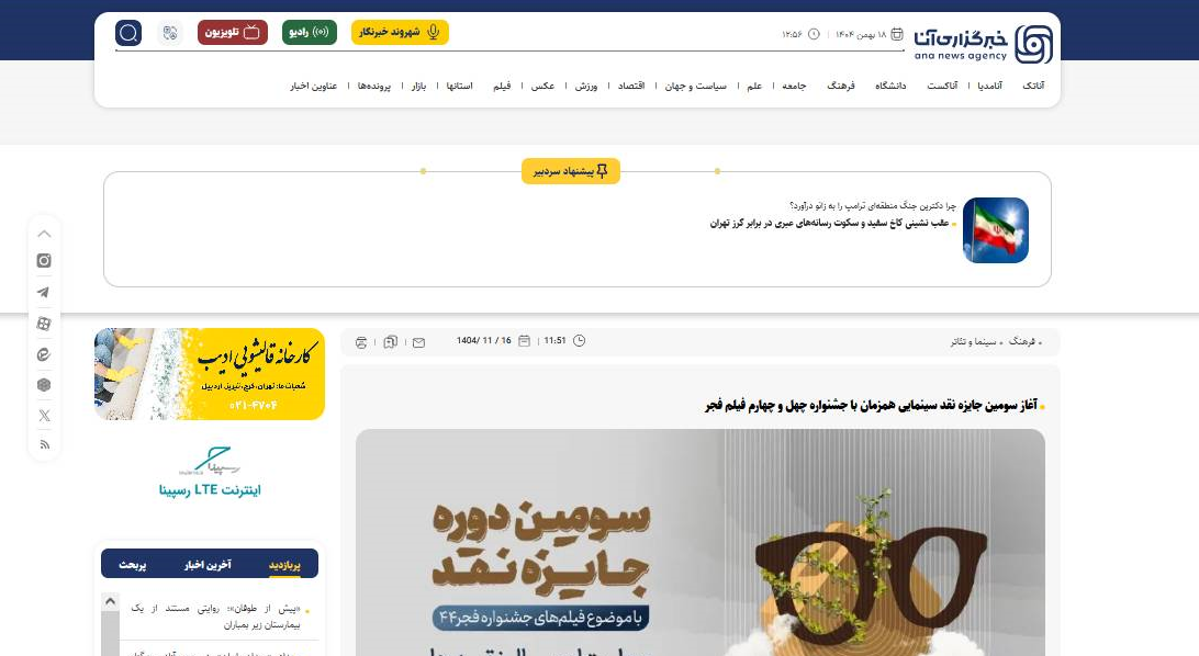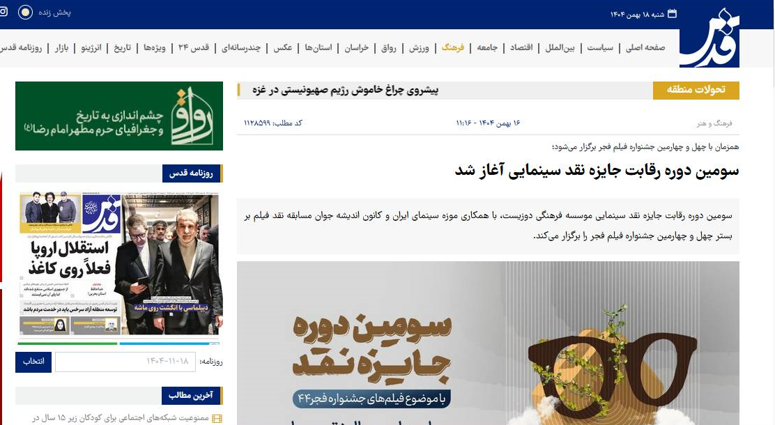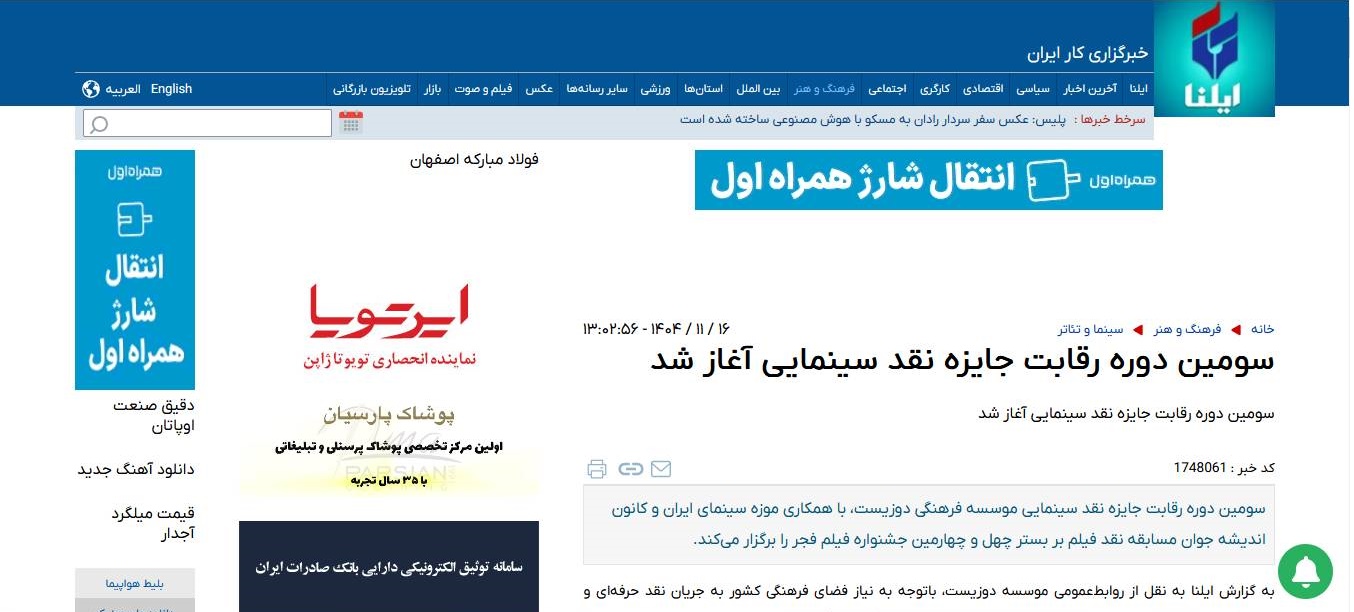 به گزارش پایگاه خبری موزه سینمای ایران، اعلام برگزاری سومین دوره رقابت جایزه نقد سینمایی در رسانه های مختلف انعکاس یافت .